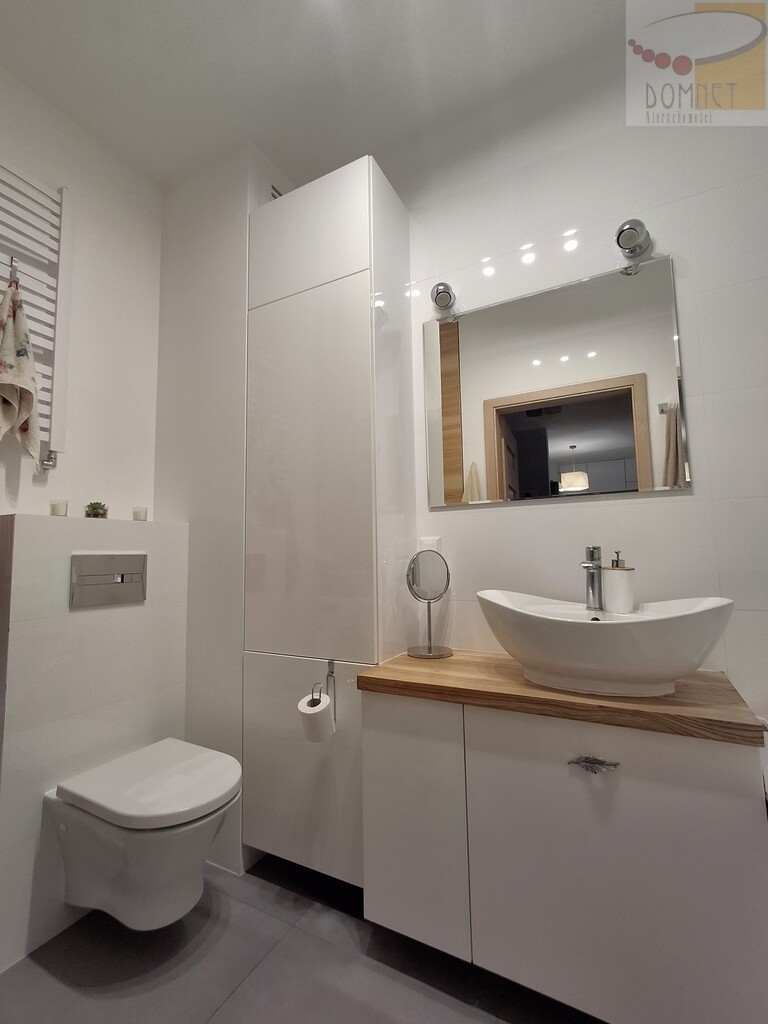 Mieszkanie wykończone materiałami bardzo dobrej jakości, użytkowane przez właścicieli od nowości, nigdy nie było wynajmowane dzięki czemu zachowało swój dobry stan.