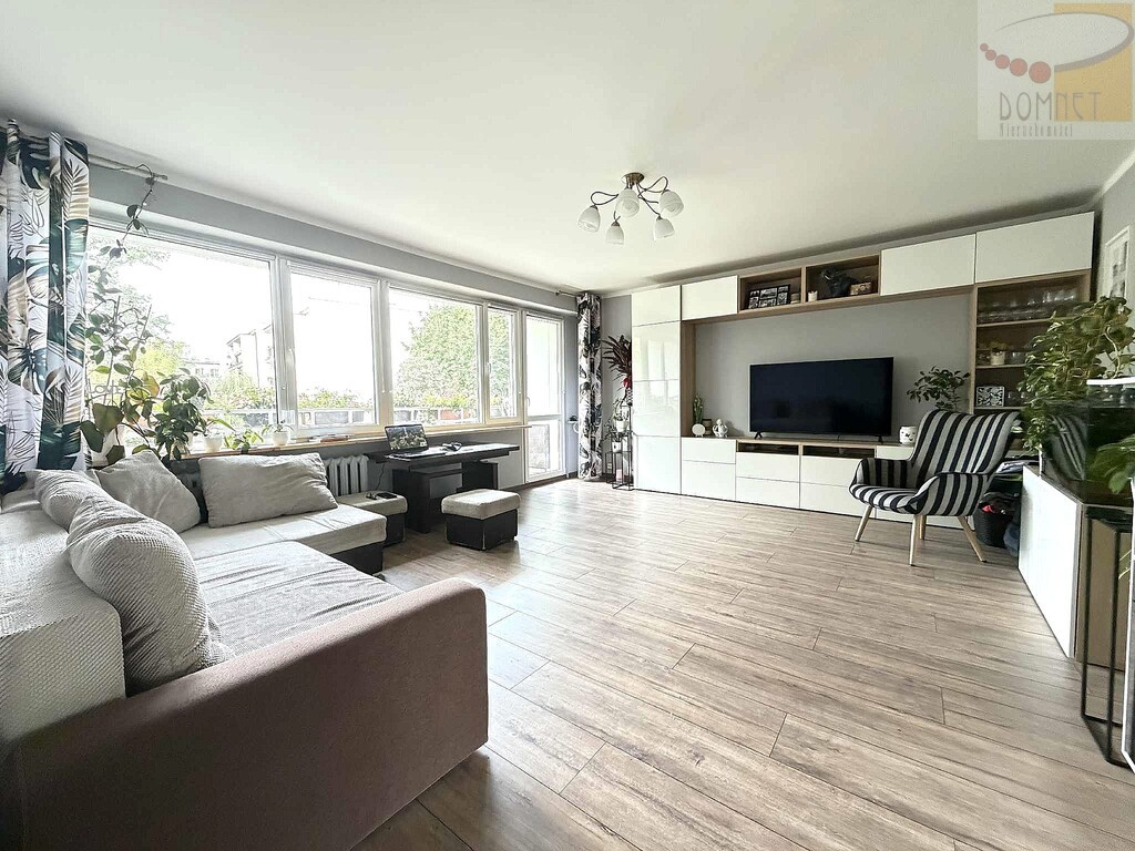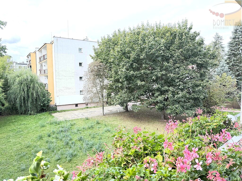 Okna mieszkania są skierowane na część zachodnią bloku, z pięknym widokiem na zieleń (duże drzewa, kwitnące wiosną bzy), co czyni to mieszkanie komfortowym miejscem do życia.
