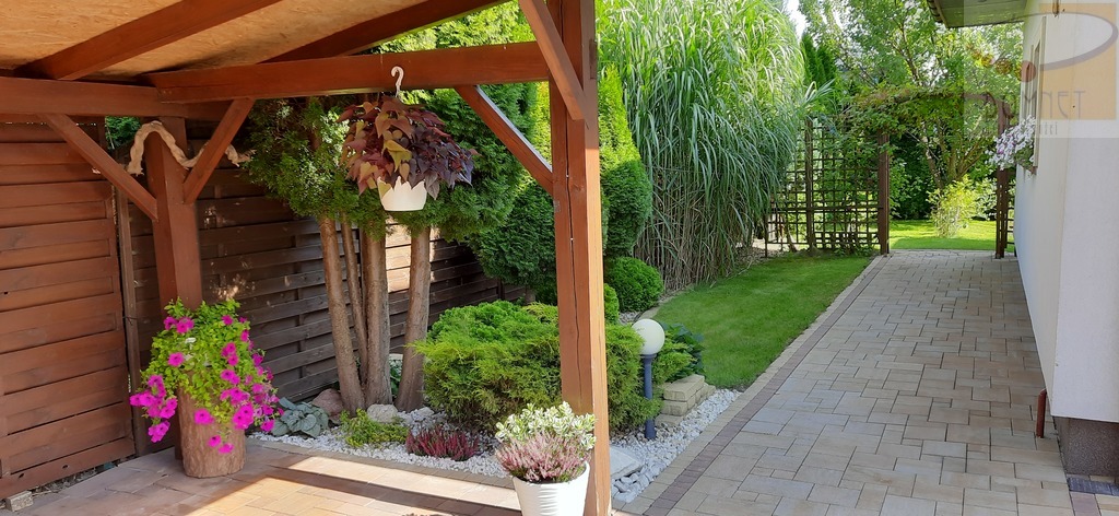Do sprzedania rodzinny, funkcjonalny, zadbany dom o powierzchni 210 m2 z garażem, otoczony zagospodarowanym ogrodem, zadaszonym tarasem z meblami ogrodowymi.