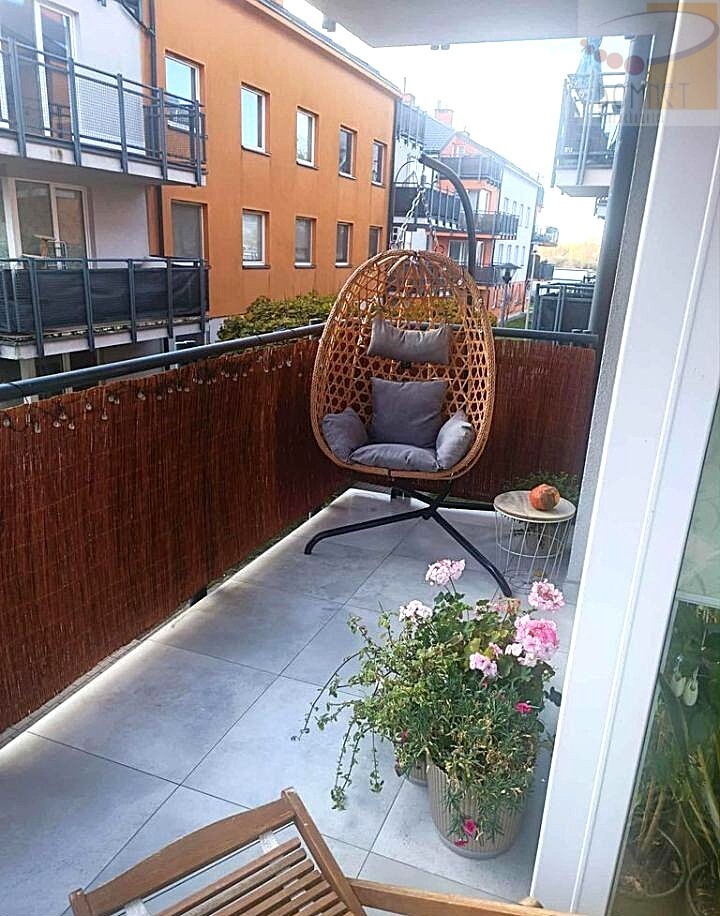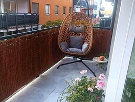 Balkon 12,5 m2 ma nową izolację, terakotę i wiklinę.