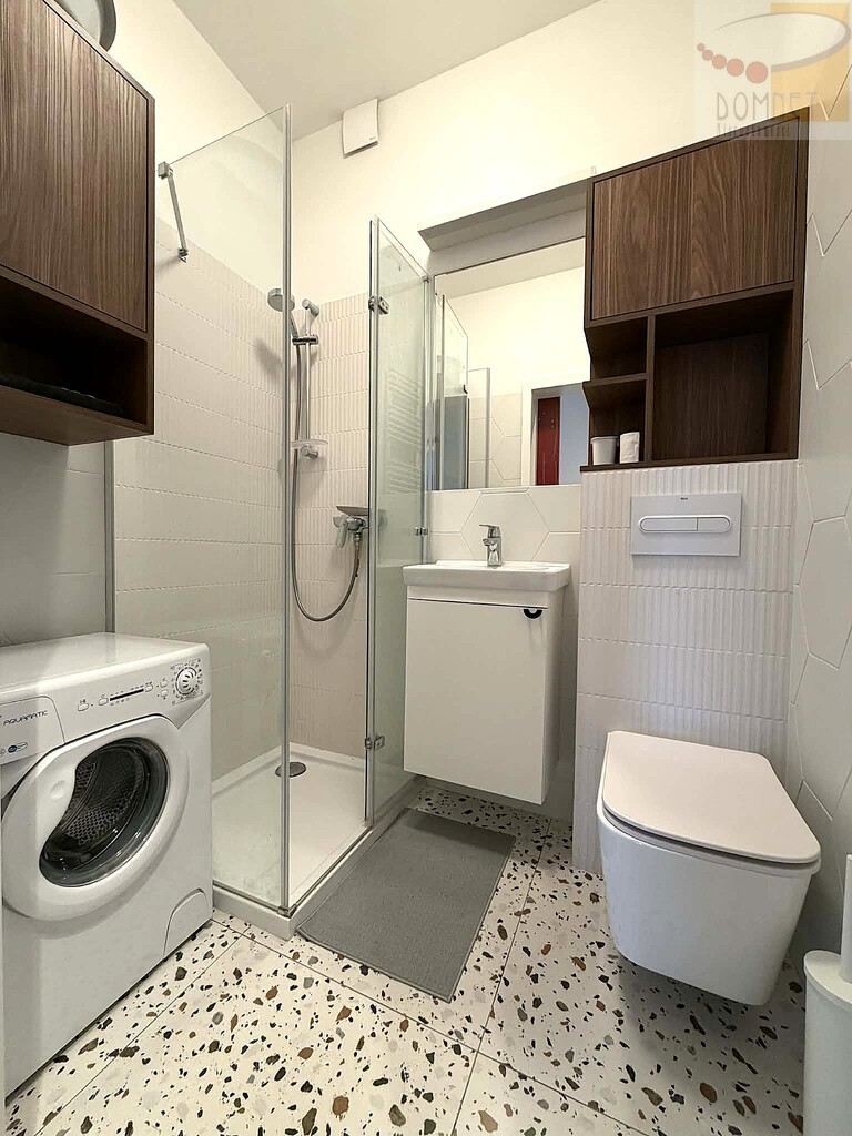Na wyposażeniu mieszkania nowa sofa sits Timjan (o wartości ok.6 tyś. zł), czarny stół robiony na zamówienie, zasłony szyte na wymiar. Krzesła, komoda i dodatki widoczne na zdjęciach są uwzględnione w cenie. W mieszkaniu na przedpokoju jest obszerna szafa oraz meble w łazience, wszystko robione na wymiar przez stolarza.