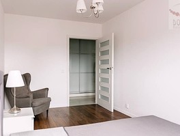 Układ pomieszczeń obejmuje przestronny salon z aneksem kuchennym i wyjściem na balkon ok. 6m2, sypialnię, garderobę, łazienkę z WC oraz przedpokój.