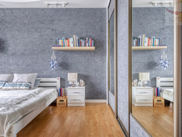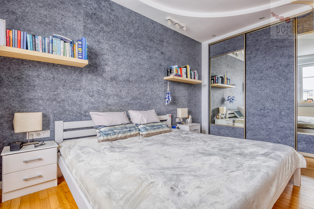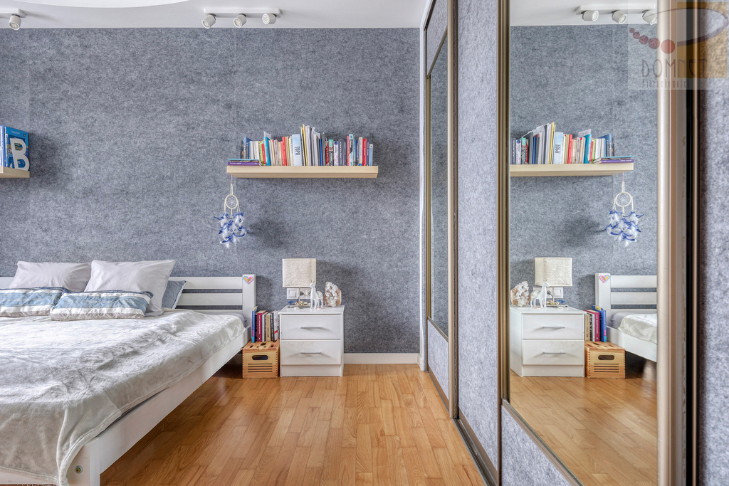 - Główna sypialnia z pojemną szafą na długości ściany