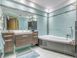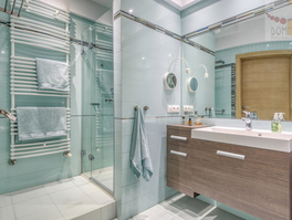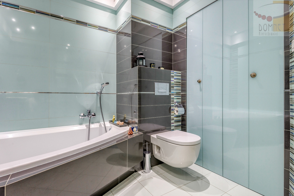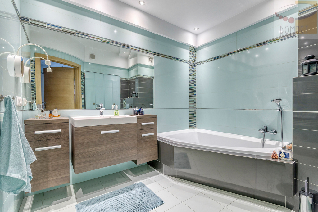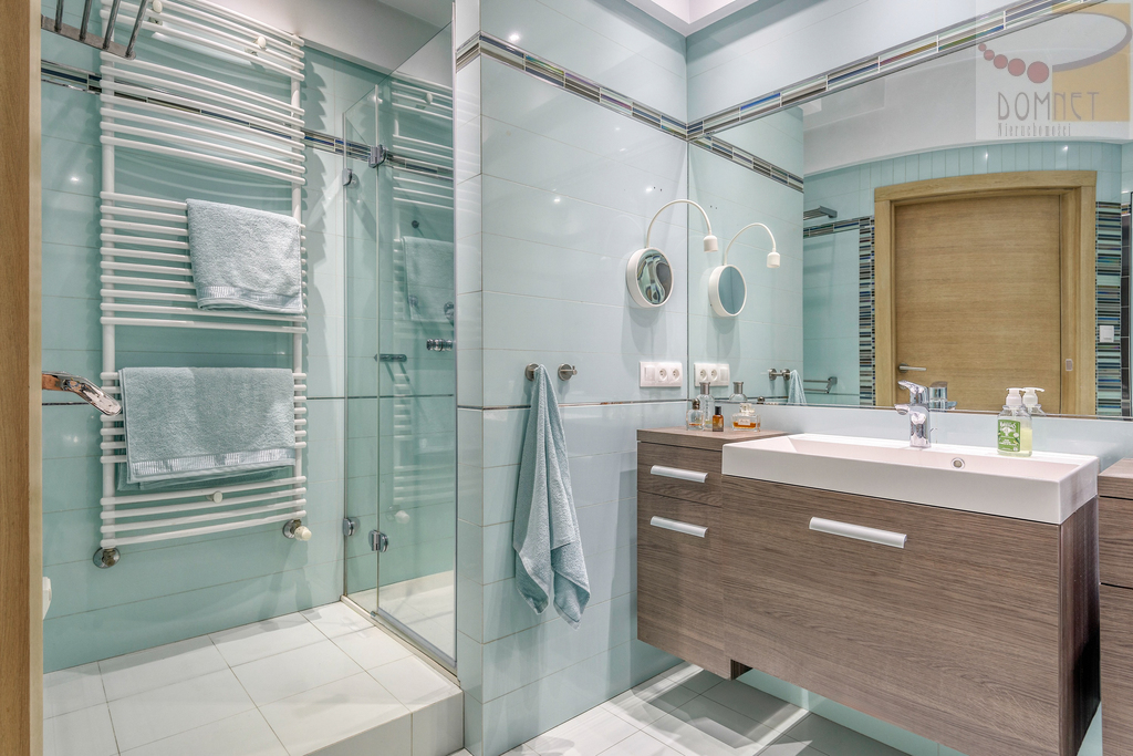- Duża łazienka z prysznicem, wanną i zamykaną pralnią
