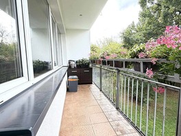 Okna mieszkania są skierowane na część zachodnią bloku, z pięknym widokiem na zieleń (duże drzewa, kwitnące wiosną bzy), co czyni to mieszkanie komfortowym miejscem do życia.