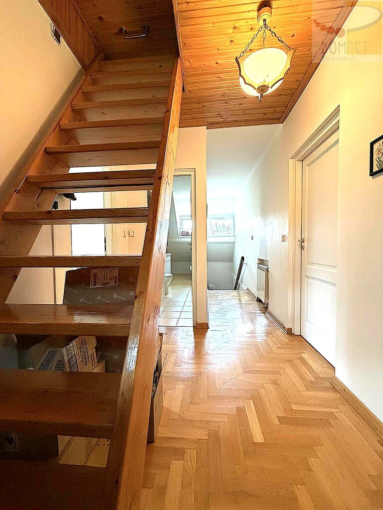 Budynek ocieplony styropianem 10 cm, tynki akrylowe, na cokole marmolit, wejście do domu i do piwnicy wyłożone płytkami klinkierowymi, okna i drzwi drewniane, na podłogach parkiet bukowy, w łazienkach i w kuchni gres, na tarasie gres, parapety marmurowe, nowe grzejniki aluminiowe, instalacja c.o miedziana, kuchnia i łazienka na parterze świeżo po remoncie.