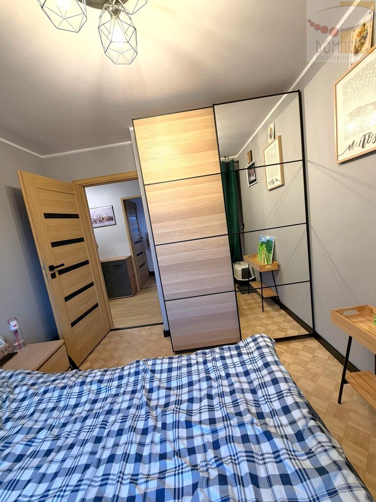 Mieszkanie ma powierzchnię 60 m2 i składa się z salonu, dwóch sypialni, oddzielnej kuchni, łazienki, pomieszczenia gospodarczego/garderoby, przedpokoju oraz balkonu. Do mieszkania przynależy komórka w piwnicy oraz schowek na półpiętrze.